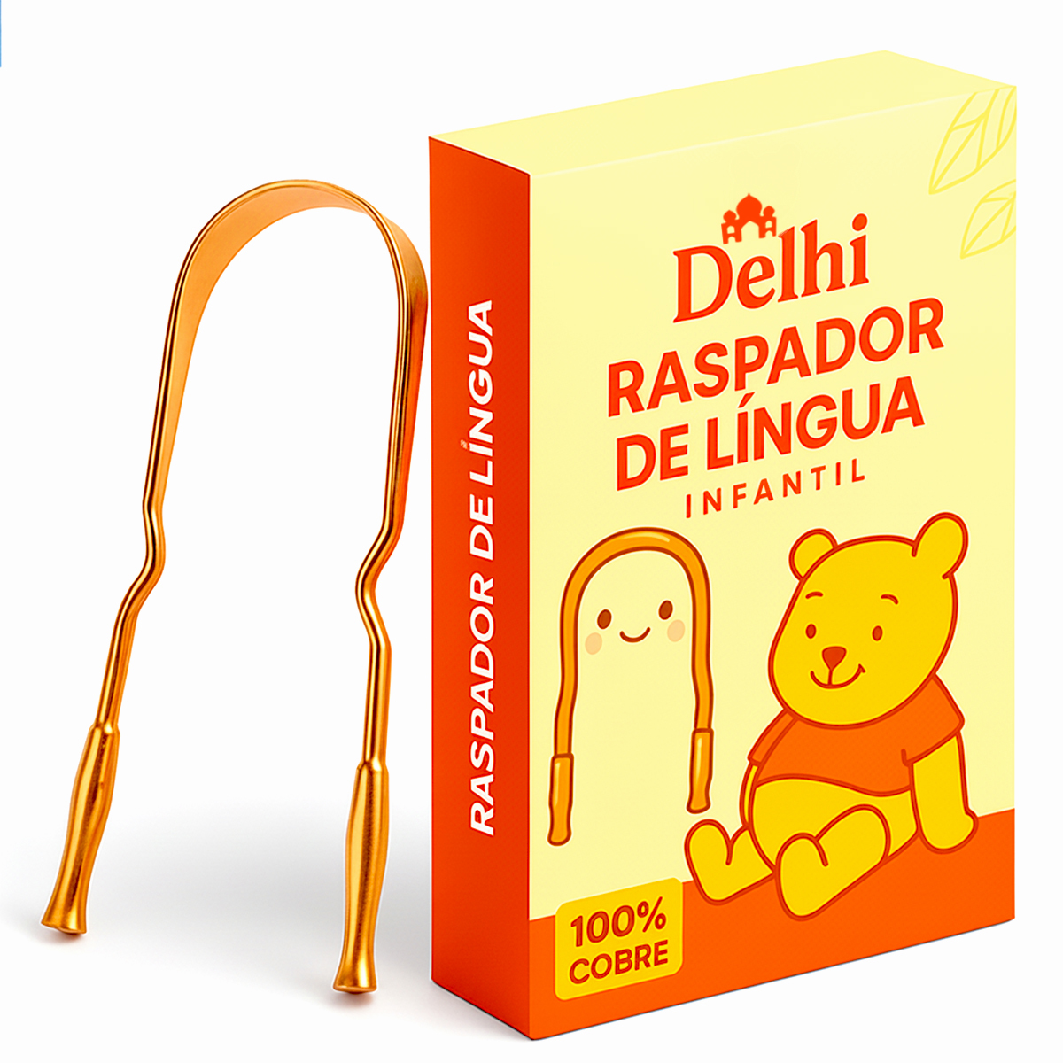 Raspador Limpador de Língua Infantil 100% Cobre Delhi